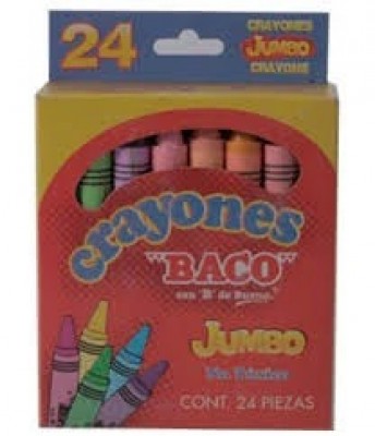 Crayones BACO Redondos 65469. Surtido con 24 piezas colores variados. Crayones redondos tamaño estándar fabricados con ceras y materiales de primera calida –