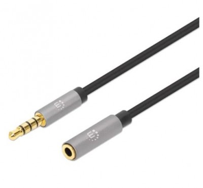 Extensión de Cable Auxiliar de Audio Estéreo MANHATTAN 356039 – 3.5 mm, Negro/Plata, 2 m