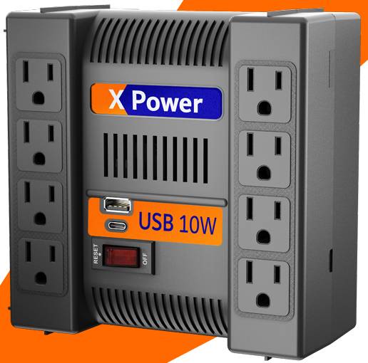 Regulador de Voltaje – Complet, Modelo ERV-9-002, Regulador de Voltaje con supresor integrado. XPOWER 1300 USB. 1, 300VA. 650W. 504J. 8 contactos.